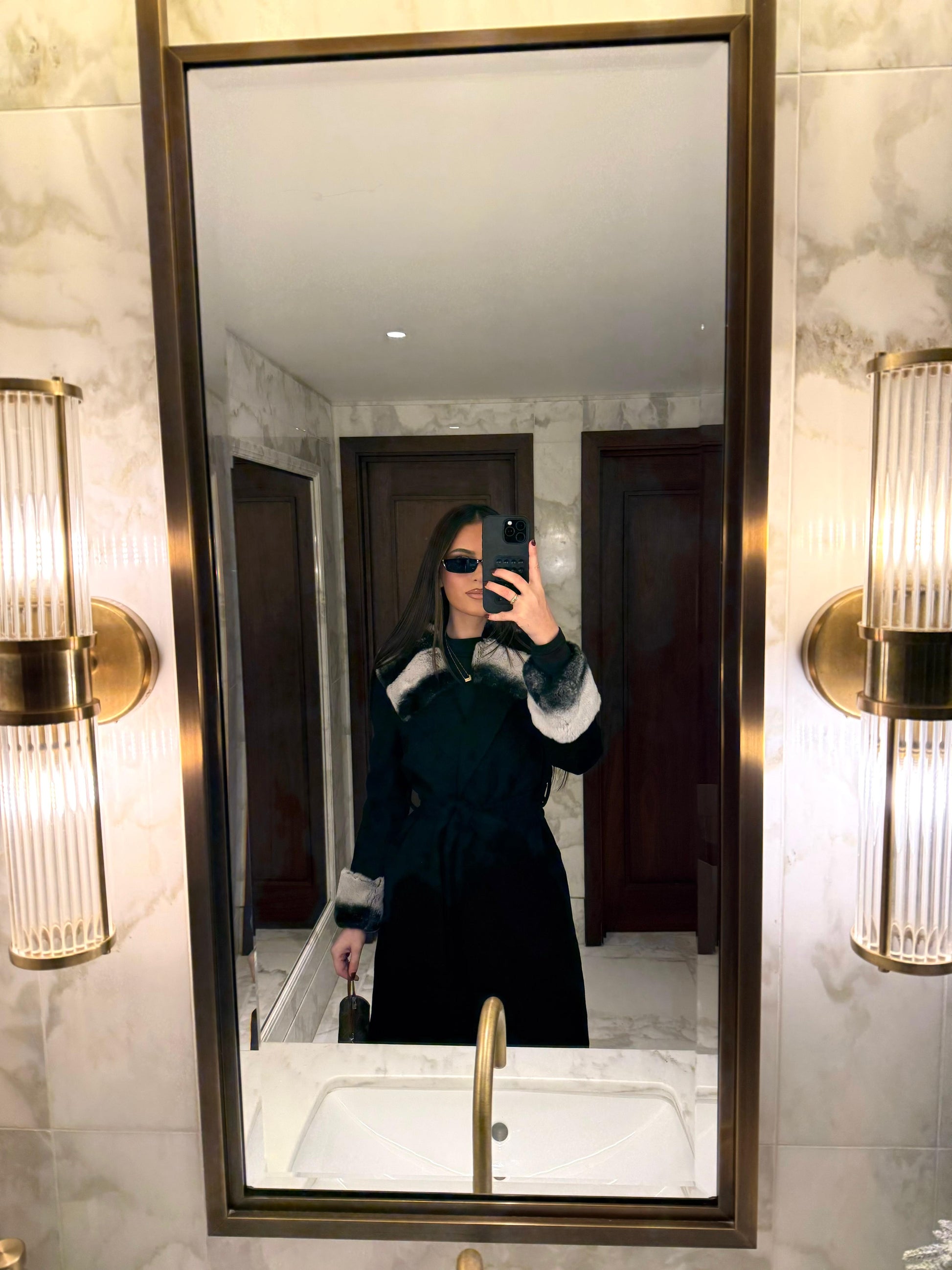 Elevate your winter style with this elegant brown wool coat, finished with ultra-soft Rex rabbit fur trim. Designed for warmth and sophistication, its long silhouette and rich tone make it a timeless cold-weather essential. Perfect for both everyday wear and special occasions.