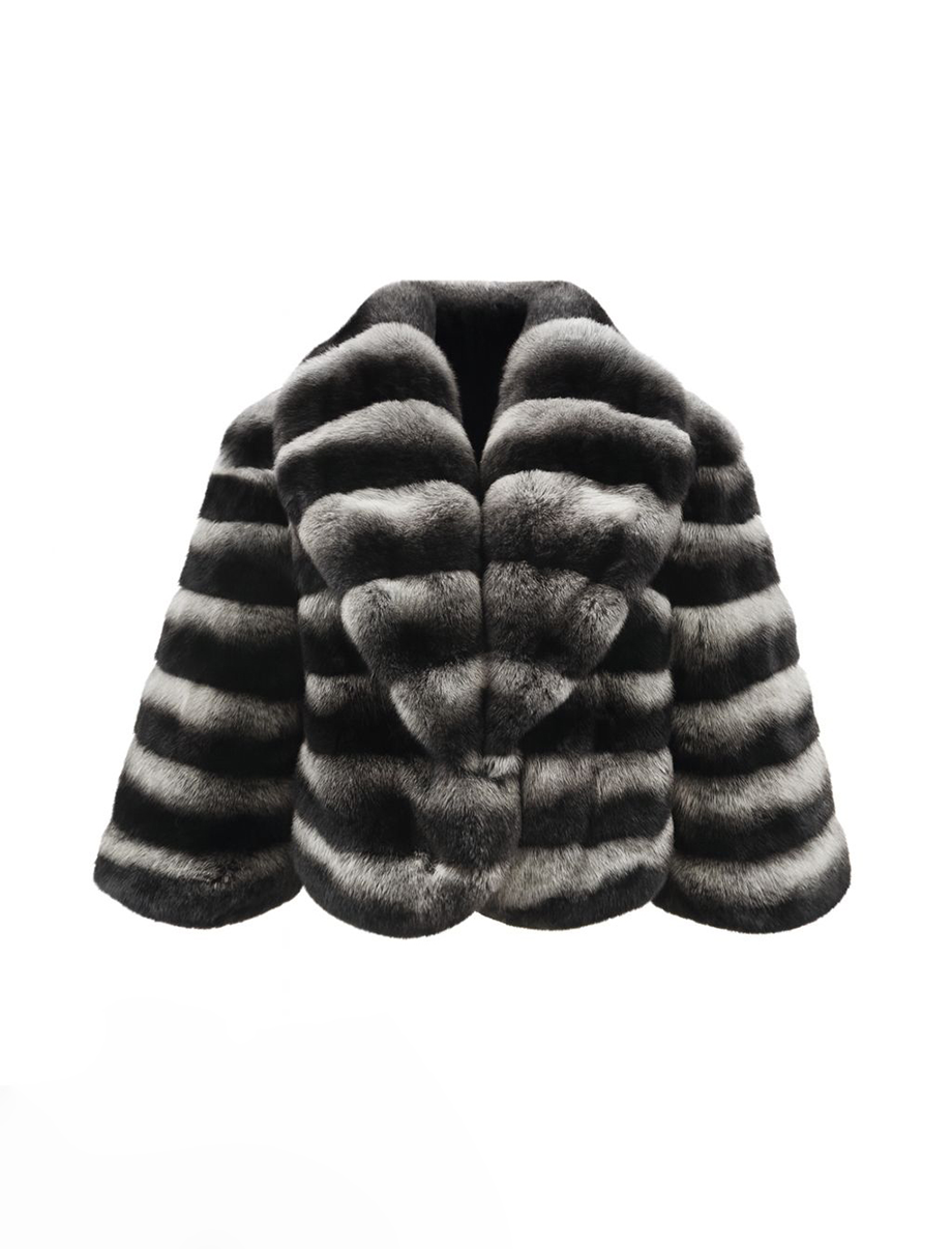 - This RexRabbit Jacket, like the whole Chaude London Collection, is made with real Rex Rabbit of the highest quality. The main features that make this elegant garment is the Notch Collar and the chevron design that give an extra touch of class.