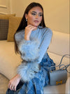 Stay stylish this winter with our blue knit featuring a luxurious Rex fur cuff. Made to keep you cozy, this sweater is soft to the touch and adds a touch of elegance to any outfit. Perfect for those chilly days, stay fashionable with our must-have winter essential.