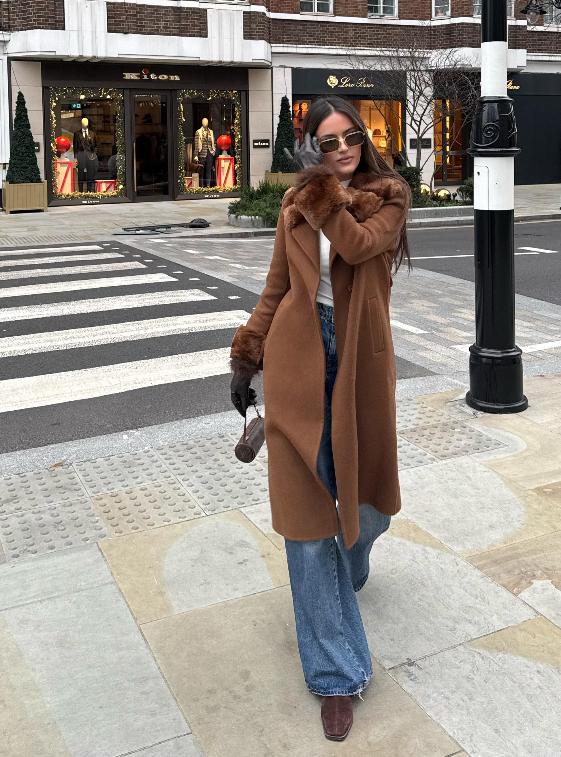 Elevate your winter style with this elegant brown wool coat, finished with ultra-soft Rex rabbit fur trim. Designed for warmth and sophistication, its long silhouette and rich tone make it a timeless cold-weather essential. Perfect for both everyday wear and special occasions.